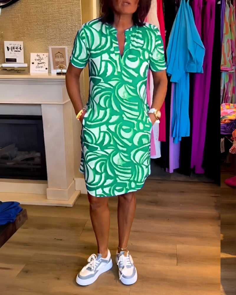 Das elegante bedruckte Kleid kombiniert lässige Eleganz mit einem Hauch von Urlaub.